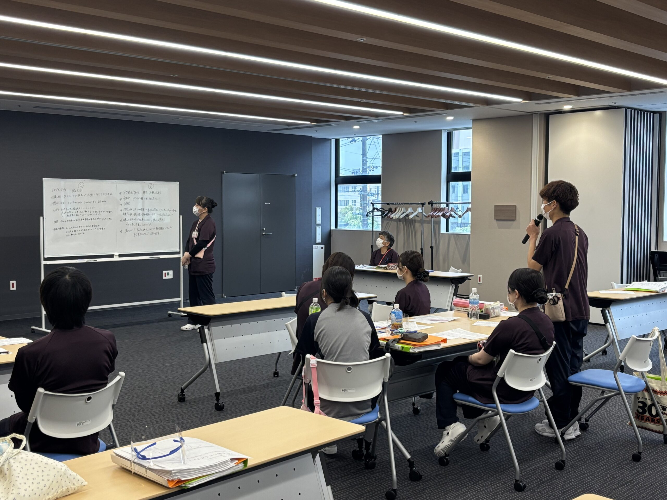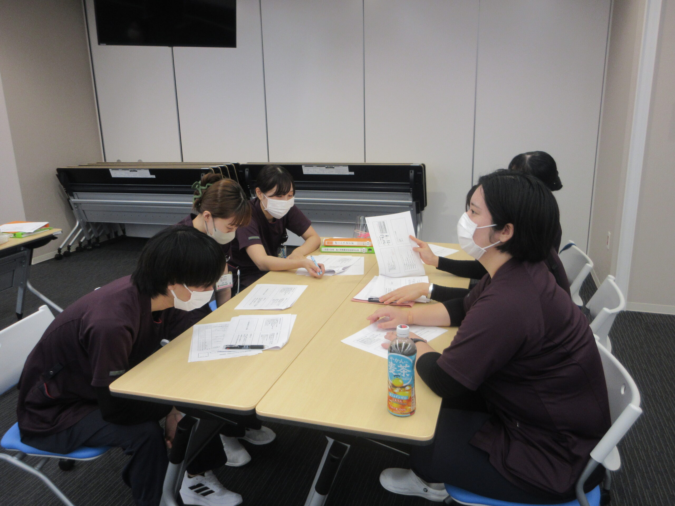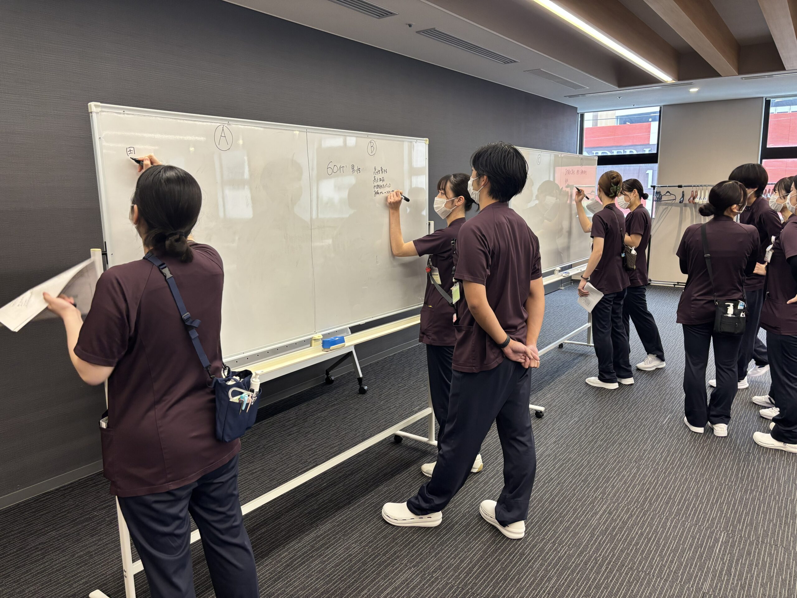 2025年11月18日 新人看護師研修「認知症看護」 今回の新人看護師研修では、「認知症看護」について学びました。 研修内容は、 ・ 認知症とせん妄の違い ・ 認知症患者への対応と注意点 ・ 認知症ケア ・ 身体拘束がもたらす弊害 の4つです。 グループワークでは、対応時の成功体験や困ったことを共有し、アセスメント内容を発表!! ローテーション研修が始まった新人さんたちは、看護について学びながら日々たくさんの経験を積み、患者さんの痛みや負担を軽減するケアの大切さを実感しています✨